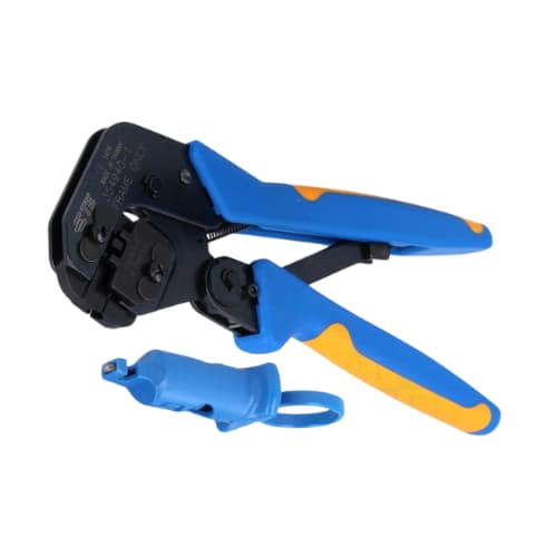Use este versátil AMP Pro-Crimper III com conjunto de matrizes de plugue modulares CAT 6 para crimpar o alicate de pressão e os contatos do plugue modular simultaneamente. O controle de catraca proporciona um ciclo de crimpagem completo. Isso ajuda a eliminar crimpagens parciais.