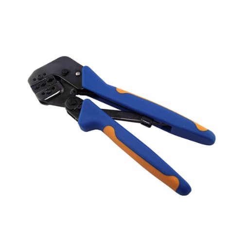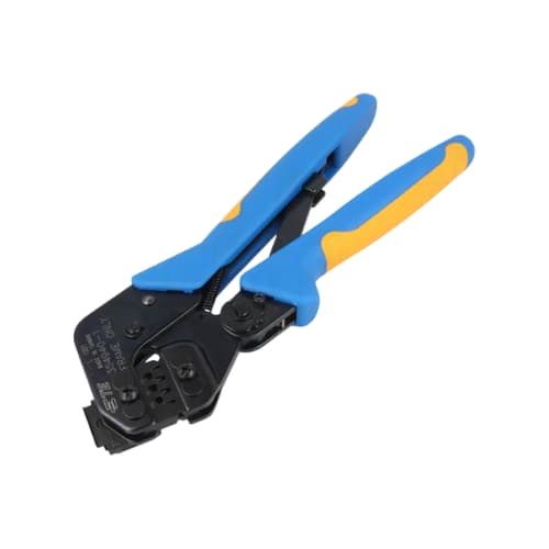 A ferramenta possui uma estrutura com garra e cabo fixos, garra móvel, alça móvel e uma catraca ajustável que garante crimpagem por contato total. A estrutura da ferramenta contém um conjunto de matriz com três câmaras de crimpagem.