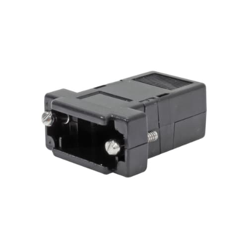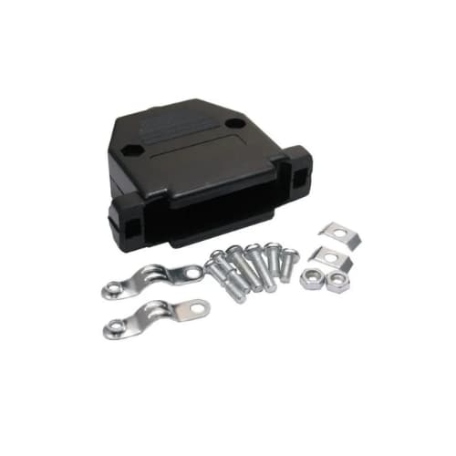 Capa plástica na cor Preta para conector RS232 ( DB ) solda fio, kit de retenção e fechamento com parafusos.