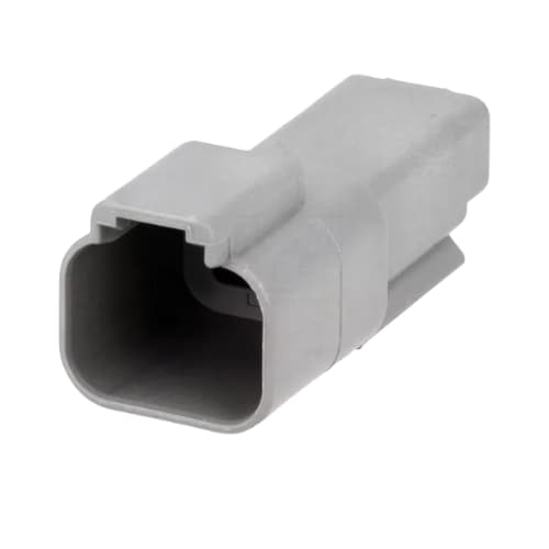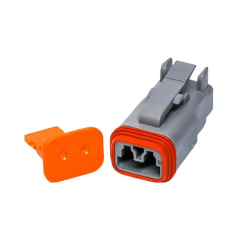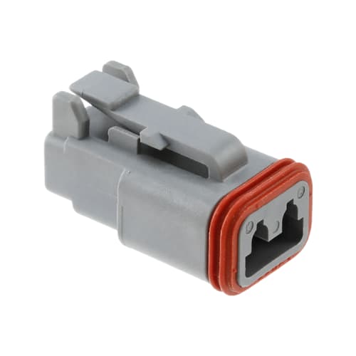 O fio traseiro de silicone e as vedações de interface evitam a entrada de detritos e umidade até a classificação IP68. A família de conectores DEUTSCH DT é compatível com o sistema de contato redondo DEUTSCH tamanho 16, classificado para 13A.