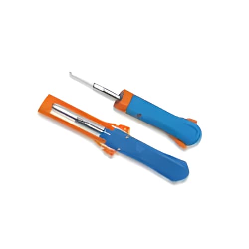 Isso requer que as lanças de travamento sejam fechadas antes do processo de extração. Esta é a finalidade de uma ferramenta de extração. A ferramenta de extração é projetada para se ajustar à geometria do invólucro, bem como à geometria do terminal.