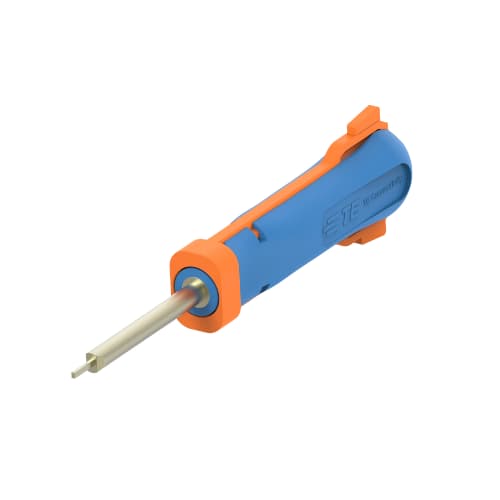 Isso requer que as lanças de travamento sejam fechadas antes do processo de extração. Esta é a finalidade de uma ferramenta de extração. A ferramenta de extração é projetada para se ajustar à geometria do invólucro, bem como à geometria do terminal.