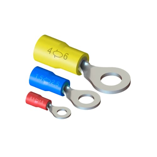 Também conhecido como Terminal Anel, pode ser pré-isolado ou não e em suas diversas versões recebe fios.