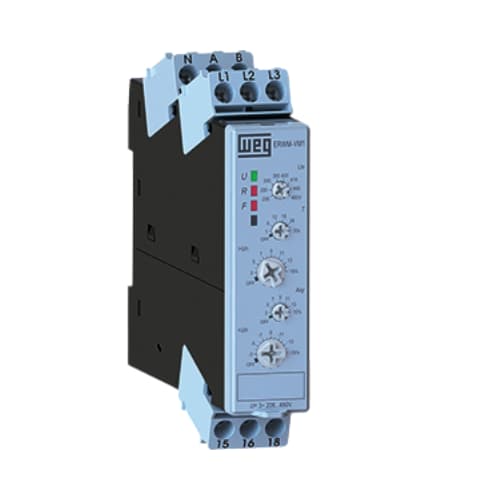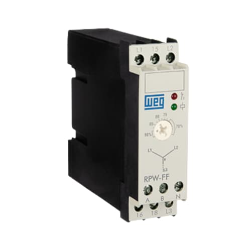 Os Relés RPW WEG são dispositivos eletrônicos que protegem os sistemas trifásicos contra falta de fase ou falta de neutro (selecionável) (RPW FF), inversão da sequência de fase (RPW SF) ou ambas as funções integradas em um mesmo produto (RPW FSF).