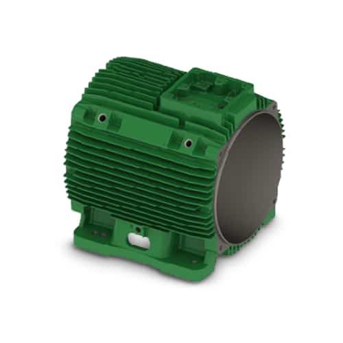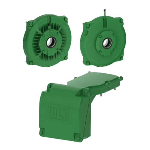 O projeto da carcaça reduz a dispersão do fluxo de ar e contribui para o aumento da troca térmica entre o motor e o ambiente, resultando em redução de pontos quentes na superfície da carcaça e no aumento do intervalo de relubrificação dos rolamentos.